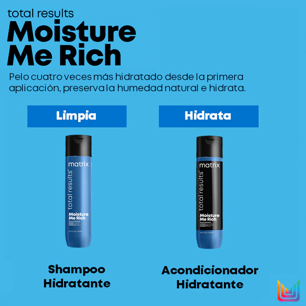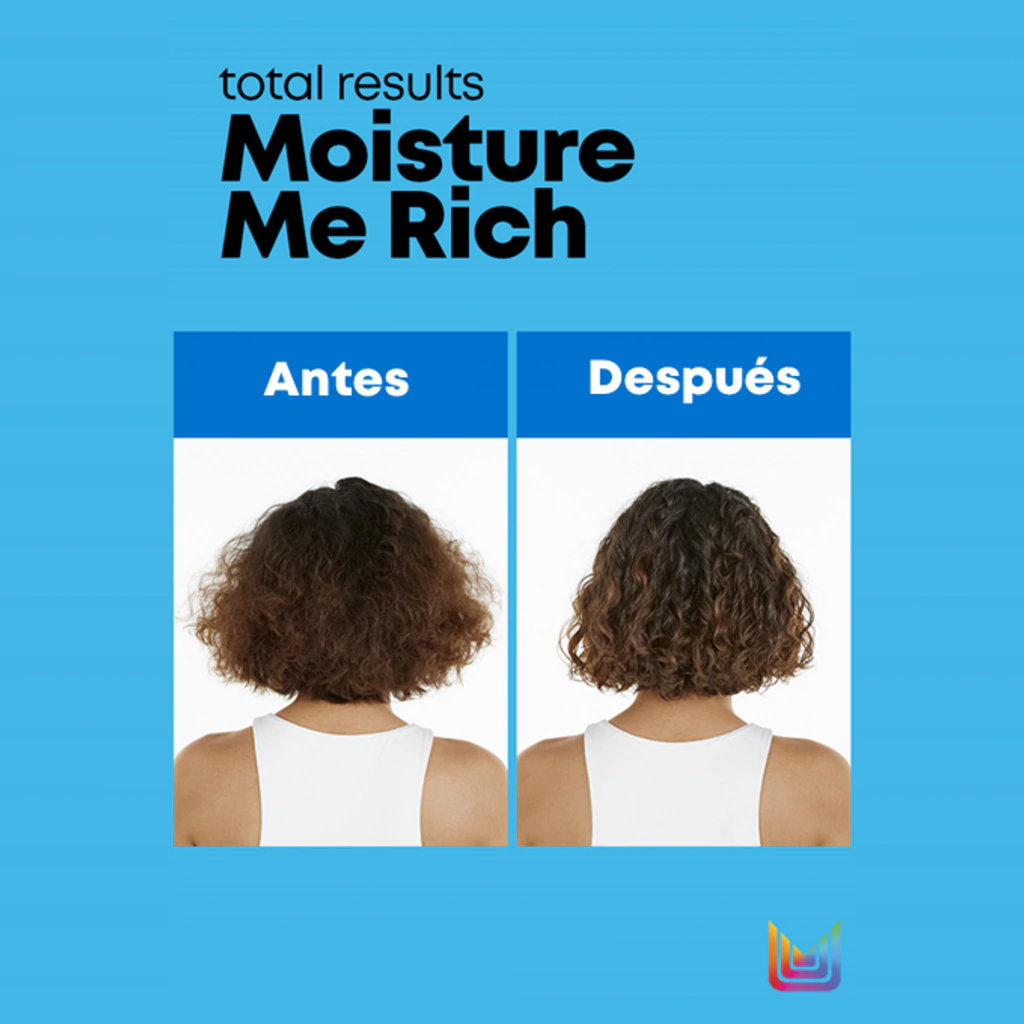 Moisture Me Rich ayuda a recuperar la hidratación del pelo, dejandolo suave, renovado y radiante. Un cabello 4x más hidratado desde la primera aplicación. Contiene Glicerina que ayuda a preservar la hidratación natural al atraer y retener la humedad.