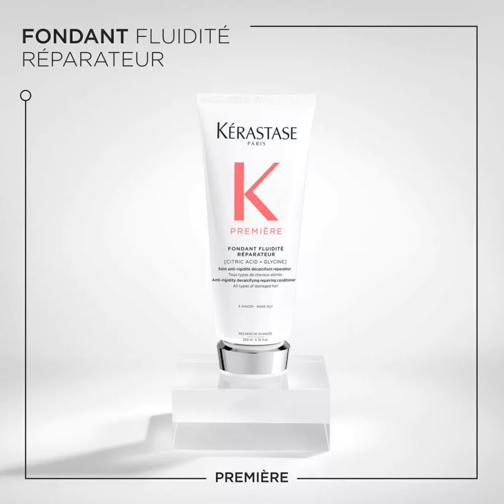 Comienza tu rutina aplicando por capas el Concentré Décalcifiant Ultra-Réparateur y Bain Décalcifiant Réparateur. Aplica Fondant Fluidité Réparateur en largos y puntas. Acaba tu rutina con Sérum Filler Fondamental y/o Huile Gloss Réparatrice para una protección térmica y un brillo intenso.