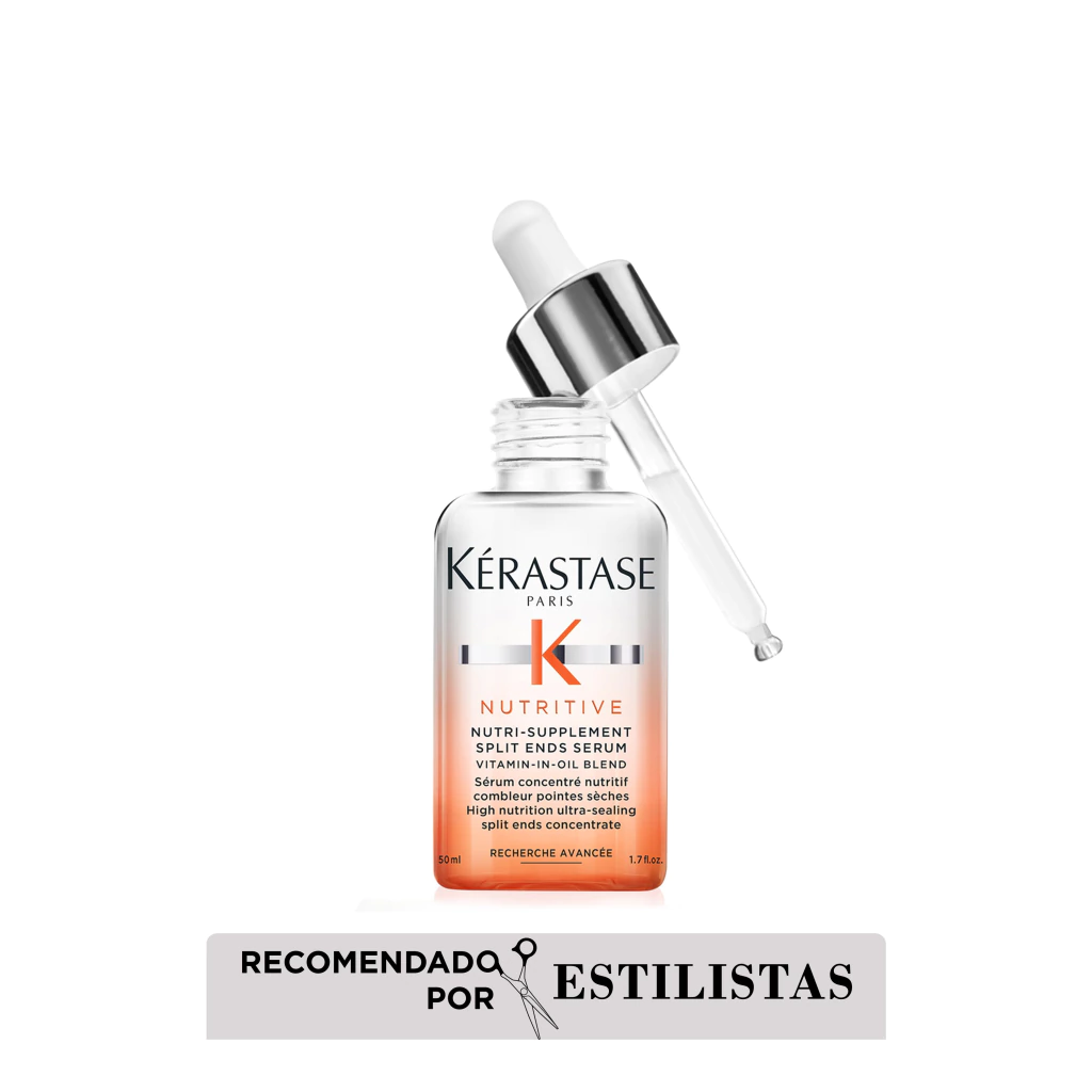 Nutri-Supplement Split Ends Serum de Kérastase es un sérum ultra sellador de puntas abiertas de alta nutrición, para cabellos secos. Este tratamiento contiene polímeros anti-sequedad para sellar las puntas secas, previniendo su aparición. También brinda una dosis de nutrientes esenciales que aumentan la capacidad de la fórmula para nutrir y fortalecer el cabello.