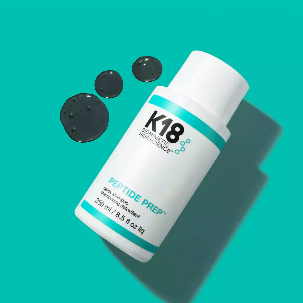 Un champú clarificante que no daña el color y que no daña el cabello con K18PEPTIDE™ para eliminar de manera suave pero efectiva el 99 % de la acumulación de producto, el 95 % de sebo + el 76 % de cobre para un cabello desintoxicado y fresco.