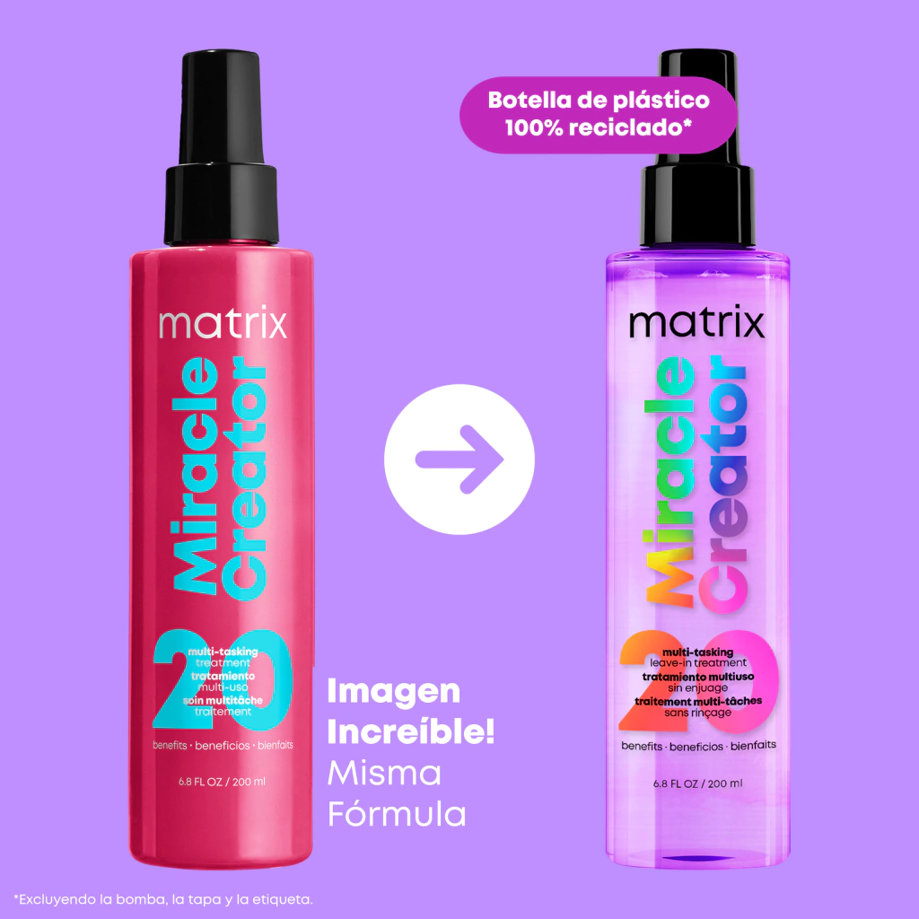 El cuidado mulfuncional Total Results Miracle Creator 20, rebosante de propiedades beneficiosas para el cabello, conquistará tu estante por méritos propios. Tan solo tendrás que rociar el producto ligero por todo el cabello para quedar maravillada con su acabado liso y sin encrespamiento. Un cuidado sumamente versátil que también va de maravilla para reparar el pelo quebrado, quitar los enredos y prevenir las puntas abiertas, además de actuar como protector térmico y de escudo contra los agentes externos que dañan el cabello... ¡Entre otros beneficios! El cambio radical de tu cabello empieza aquí.