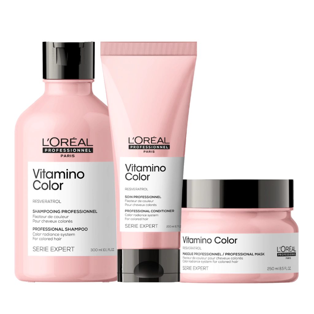 Transforma tu rutina de cuidado capilar con el Trío Vitamino Color de Loreal Professionnel. Este conjunto incluye un shampoo, acondicionador y máscara diseñados específicamente para cabelos teñidos, manteniendo el color vibrante y radiante durante hasta 8 semanas.